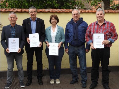 Stefan Gansen, Werner Kappes, Christel Alt, Fussballkreisvorsitzender Walter Kirsten, Chris Faas (von links)
